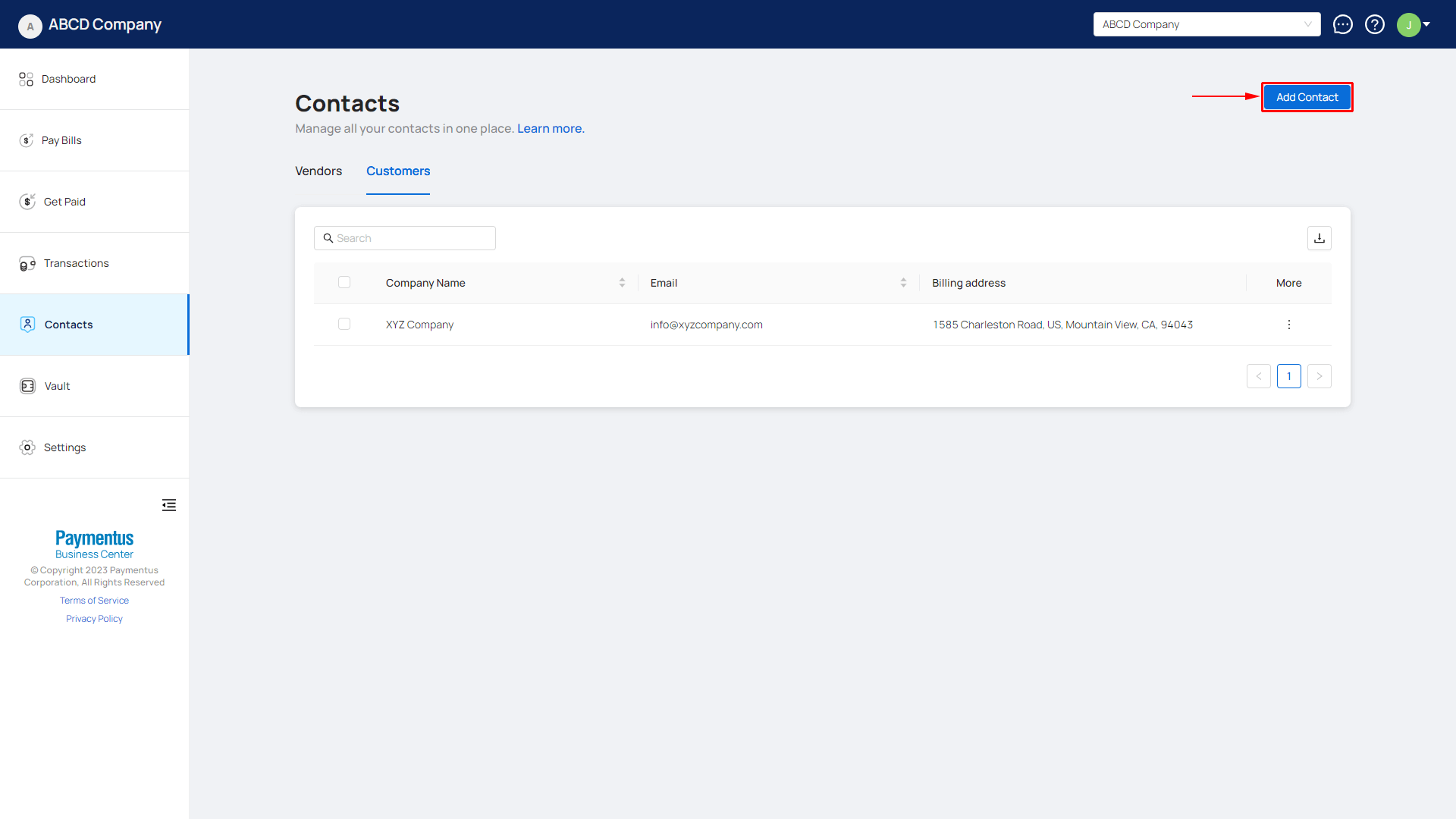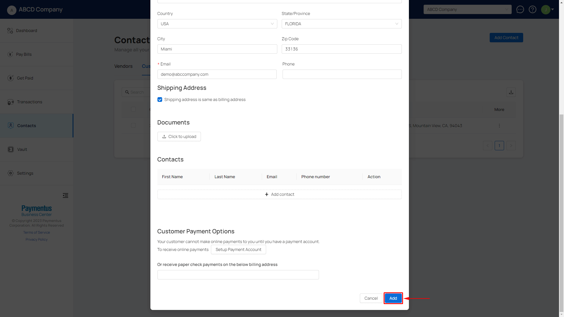 - Navigate to Contacts, click on Add Contact.