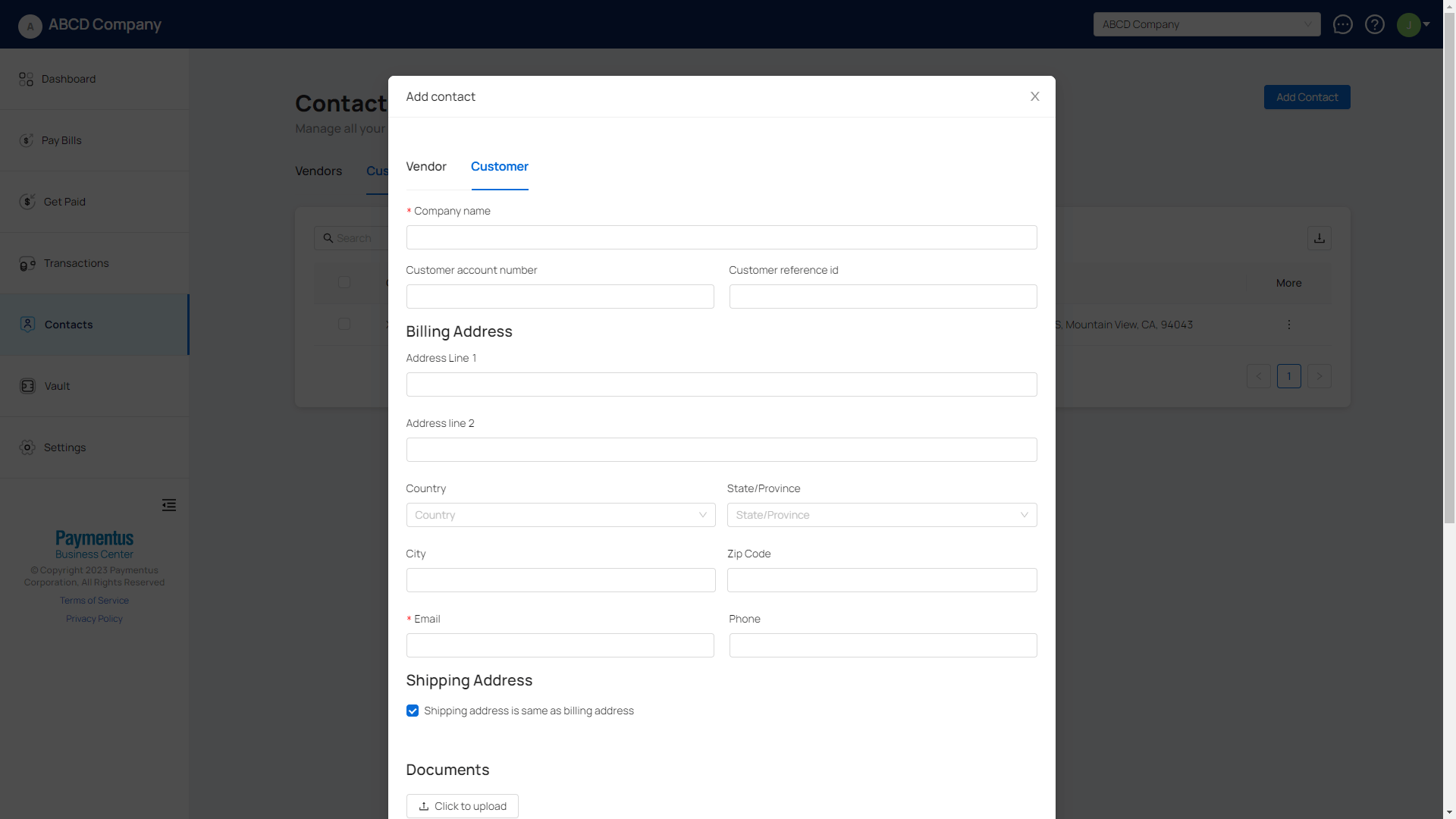 - Provide the necessary information under the Customer tab.