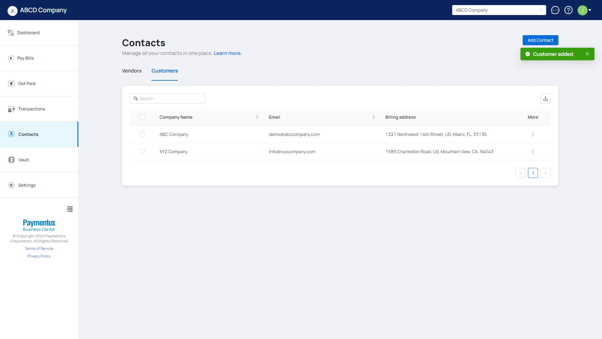 - If everything is done correctly, your customer will be added and you will see a success toast.