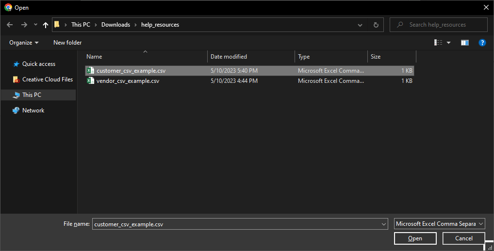 - Select the file to upload from the file dialog that appears.