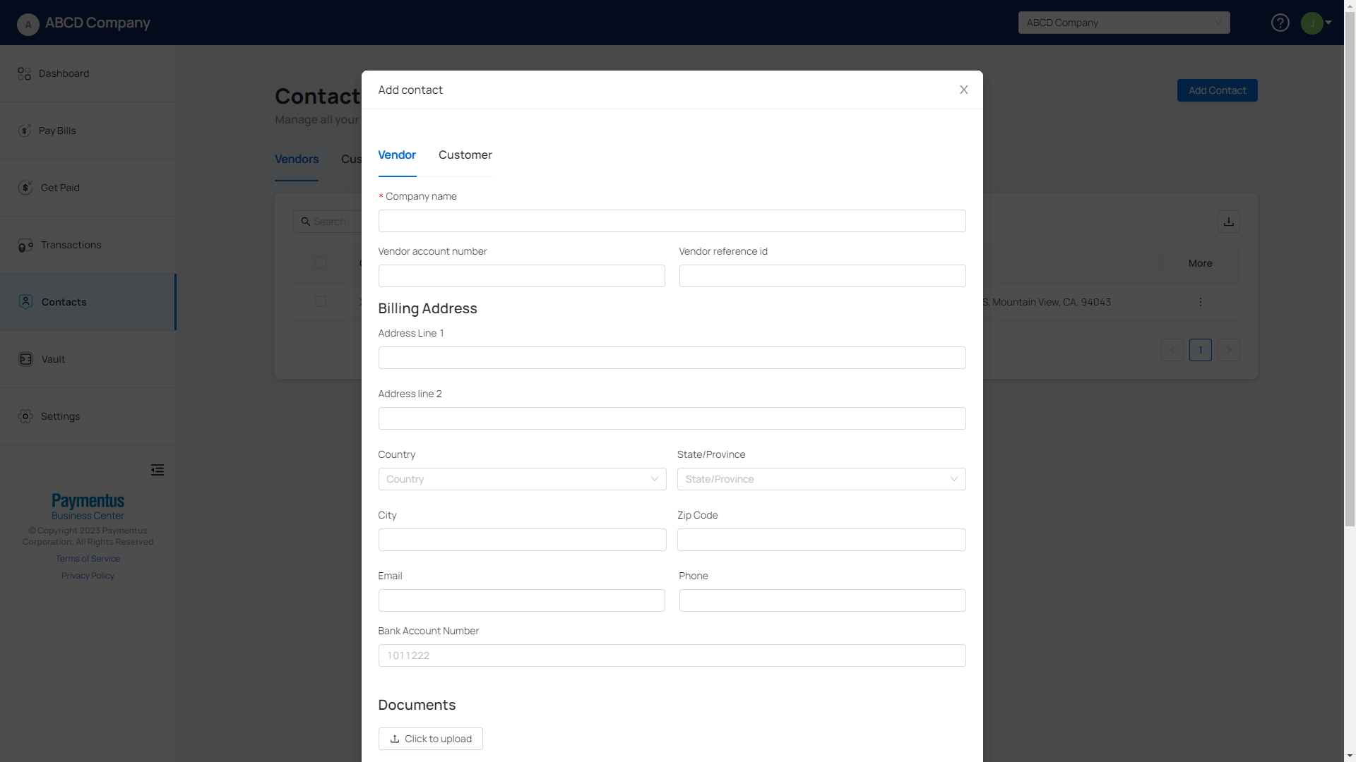 - Provide the necessary information under the Vendor tab.