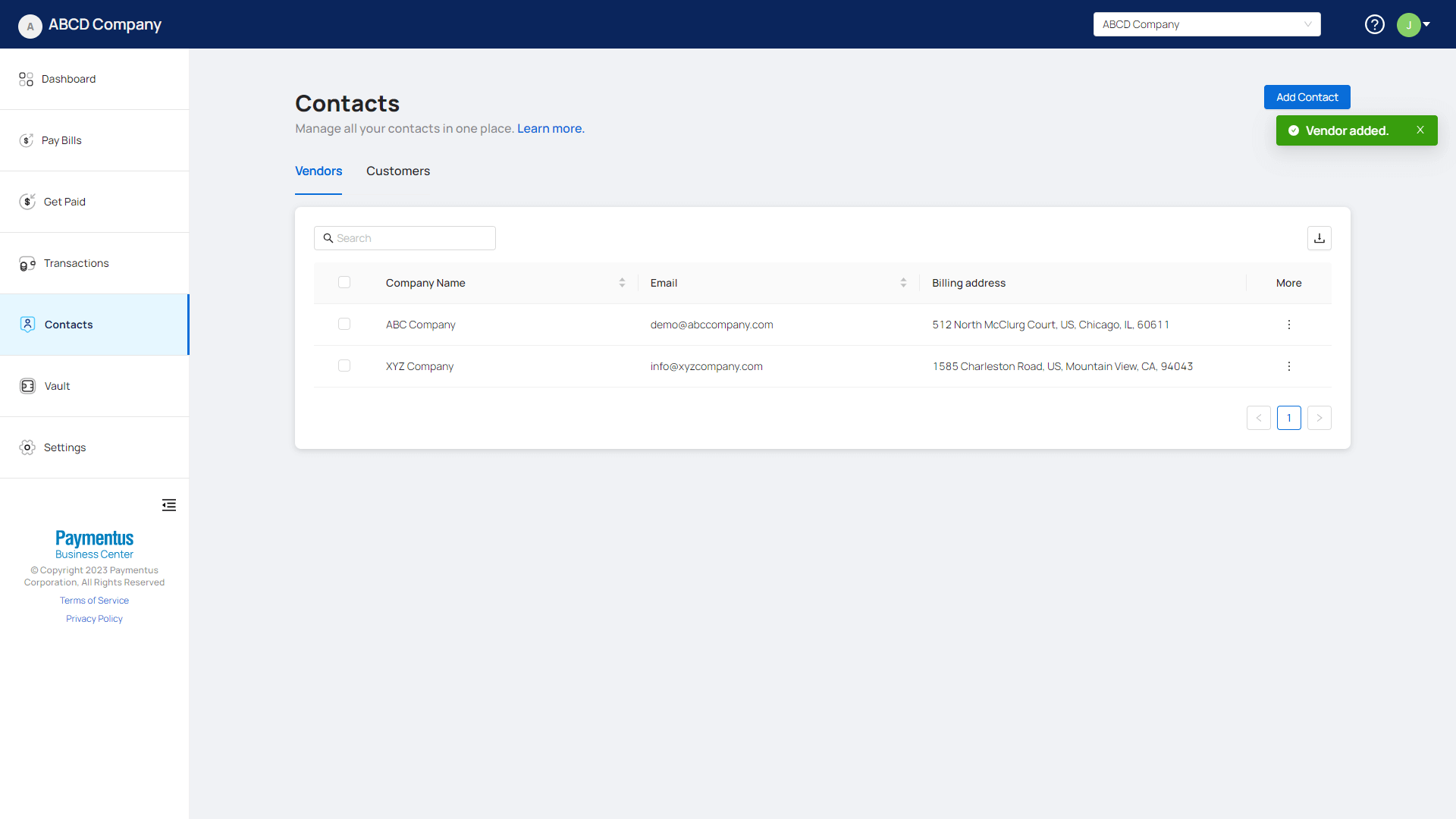 - If everything is done correctly, your vendor will be added and you will see a success toast.