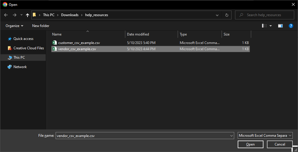 - If the file imports successfully, you'll get a success toast message and see your vendor(s) populated in the table.