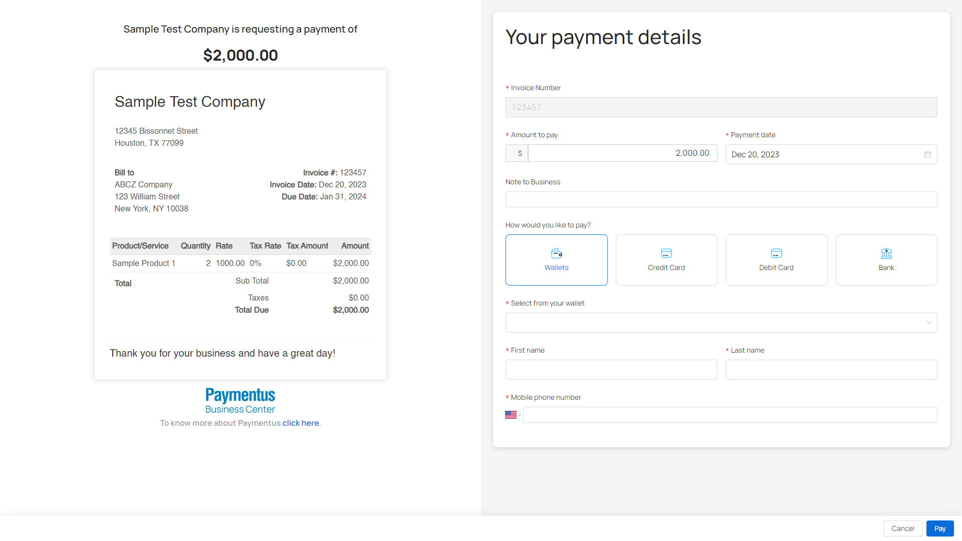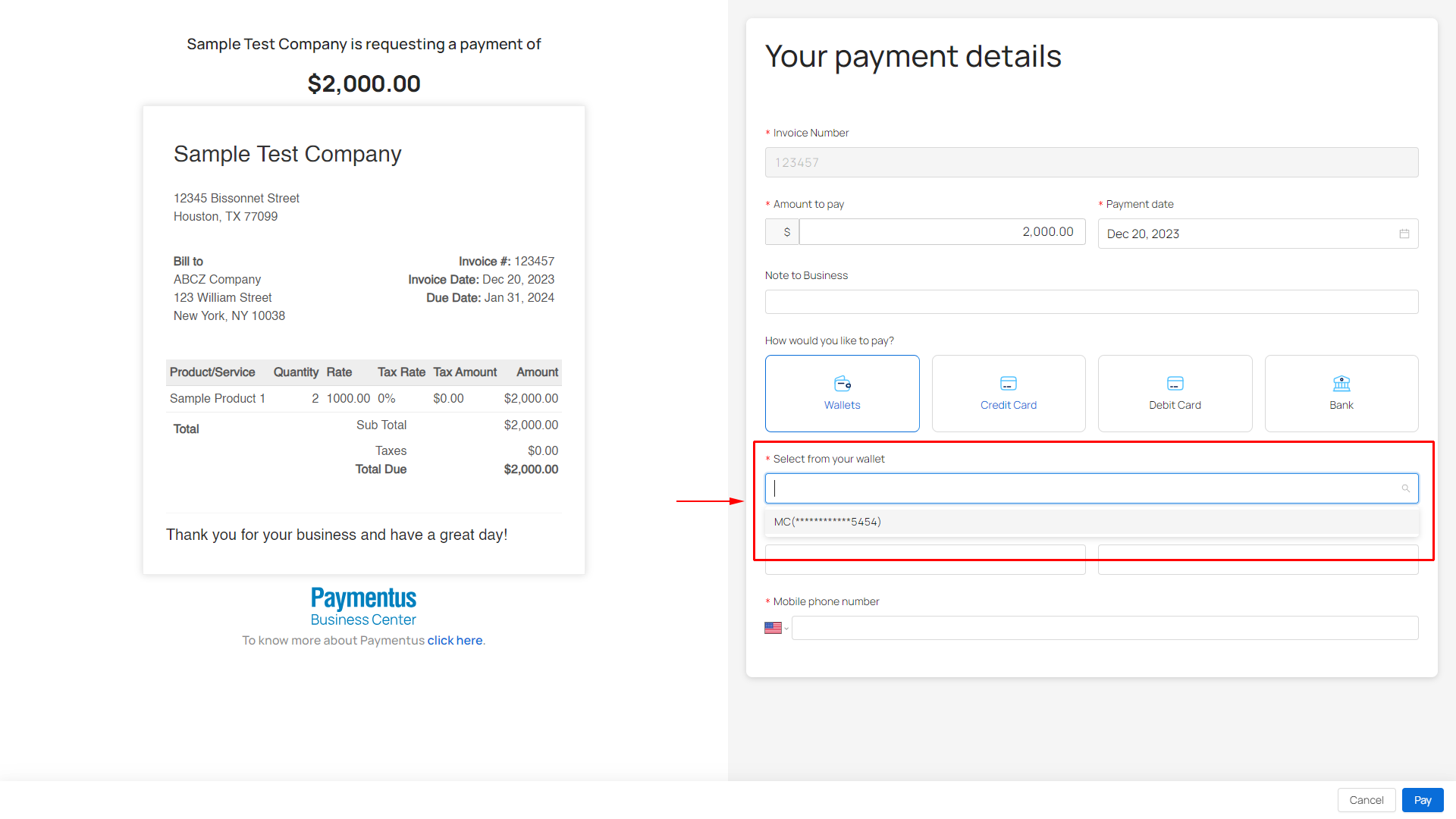 - When you're making a payment in Profit for a bill, navigate to How would you like to pay?