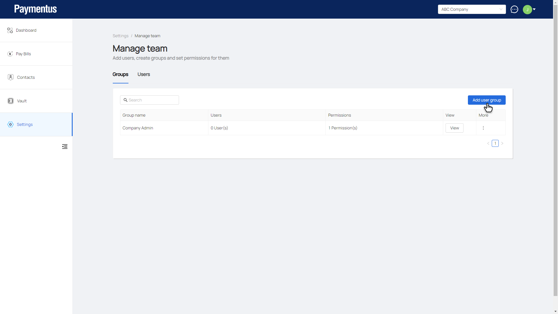 - Click on Add user group.
