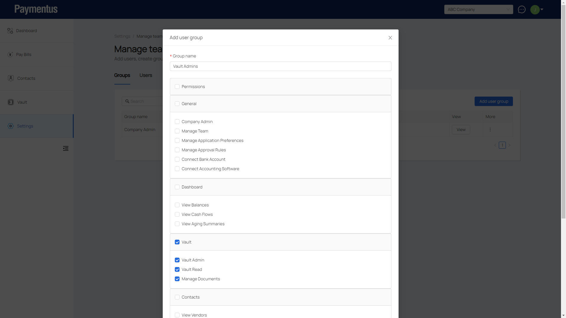 - Enter the name of this group and select the permissions it will have.