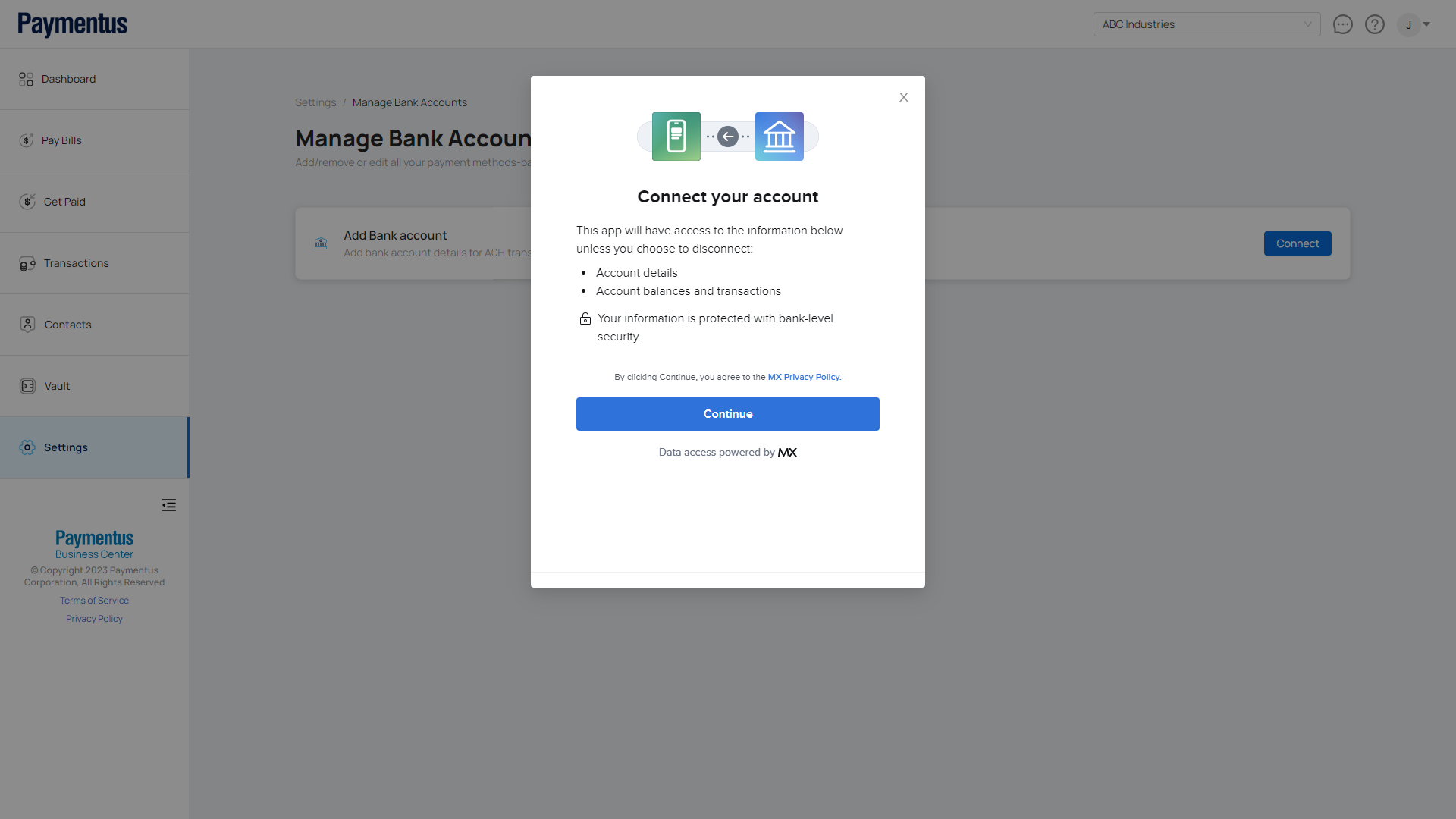 How do I connect to my bank?
