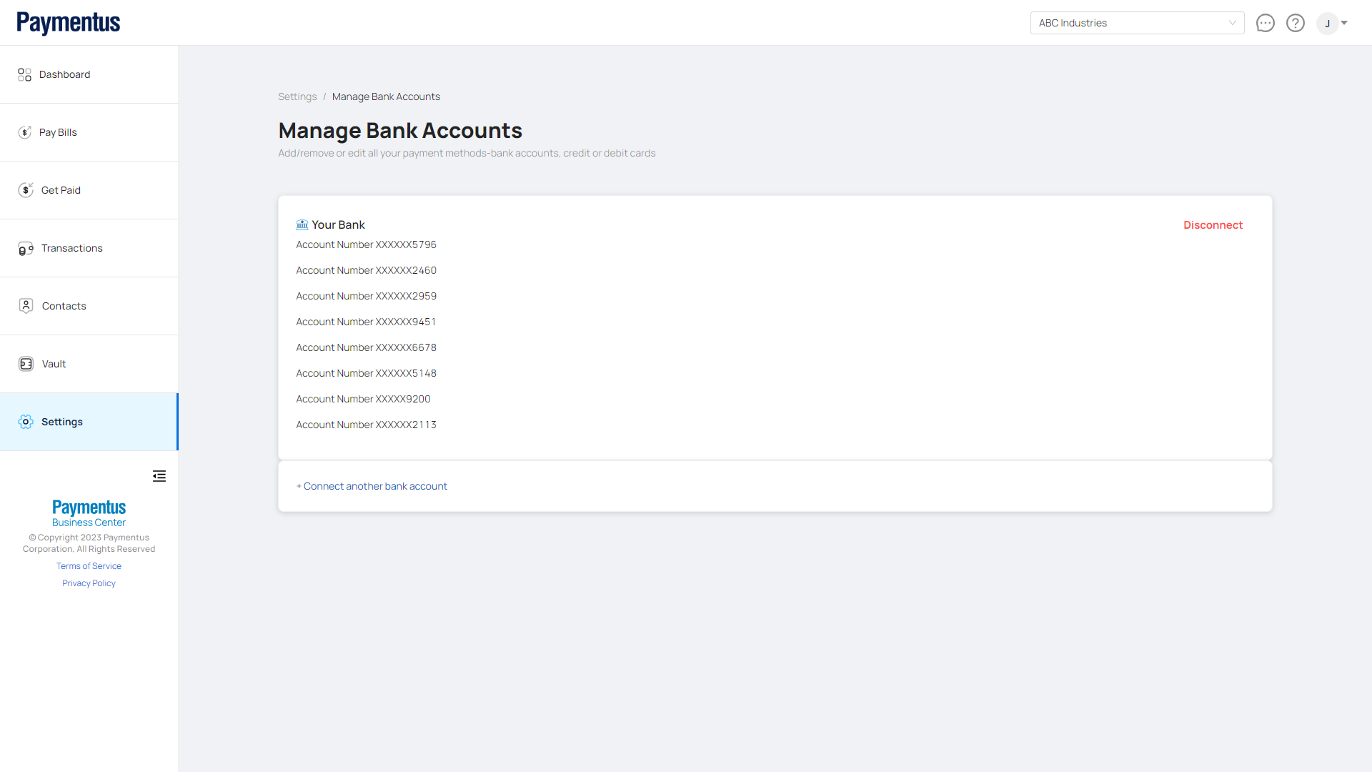 - After a successful connection, the page will be updated with your bank information.