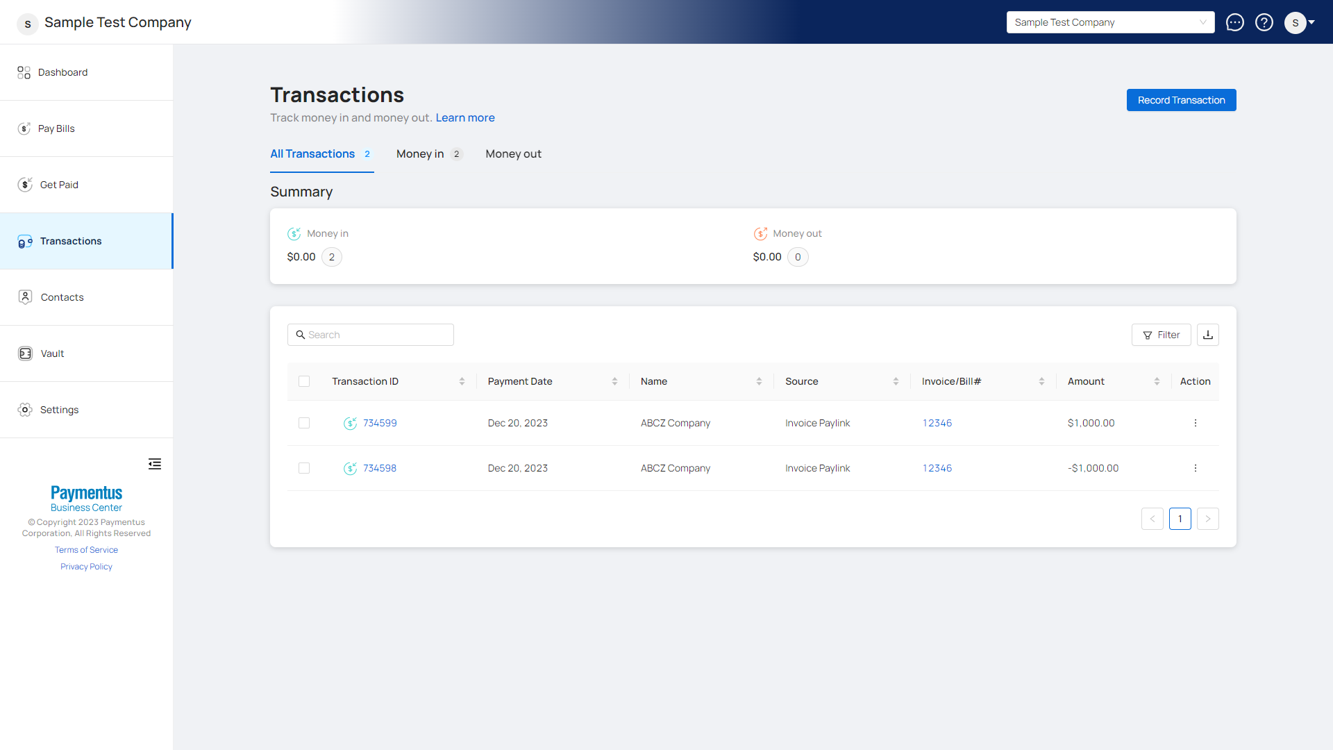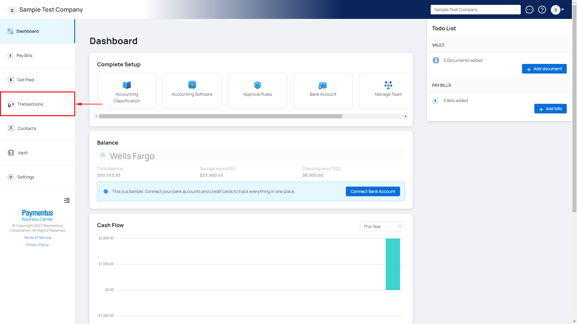 - Click on Transactions from the left side nav menu.